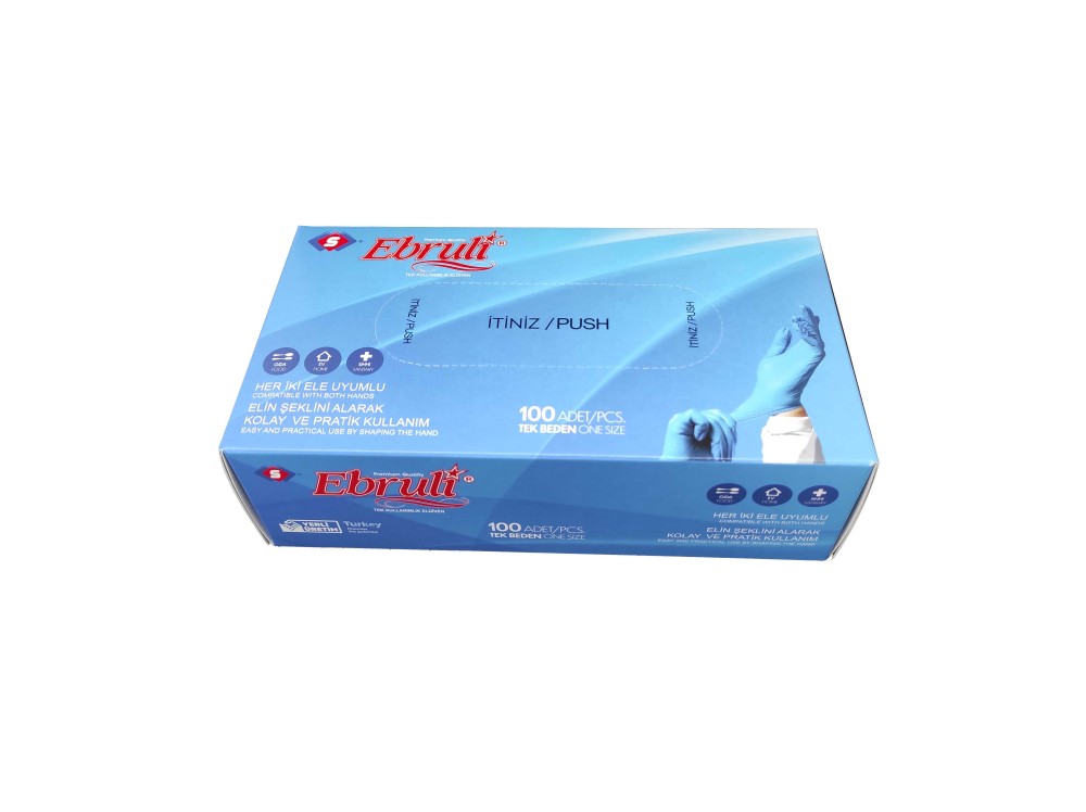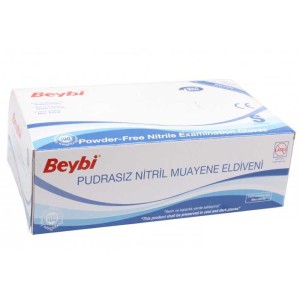 Beybi Nitril Pudrasız Muayene Eldiven Mavi Büyük Boy