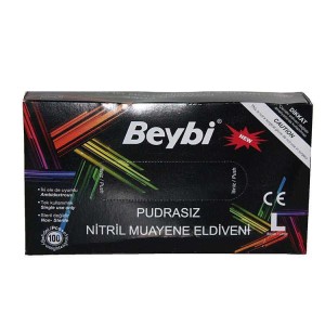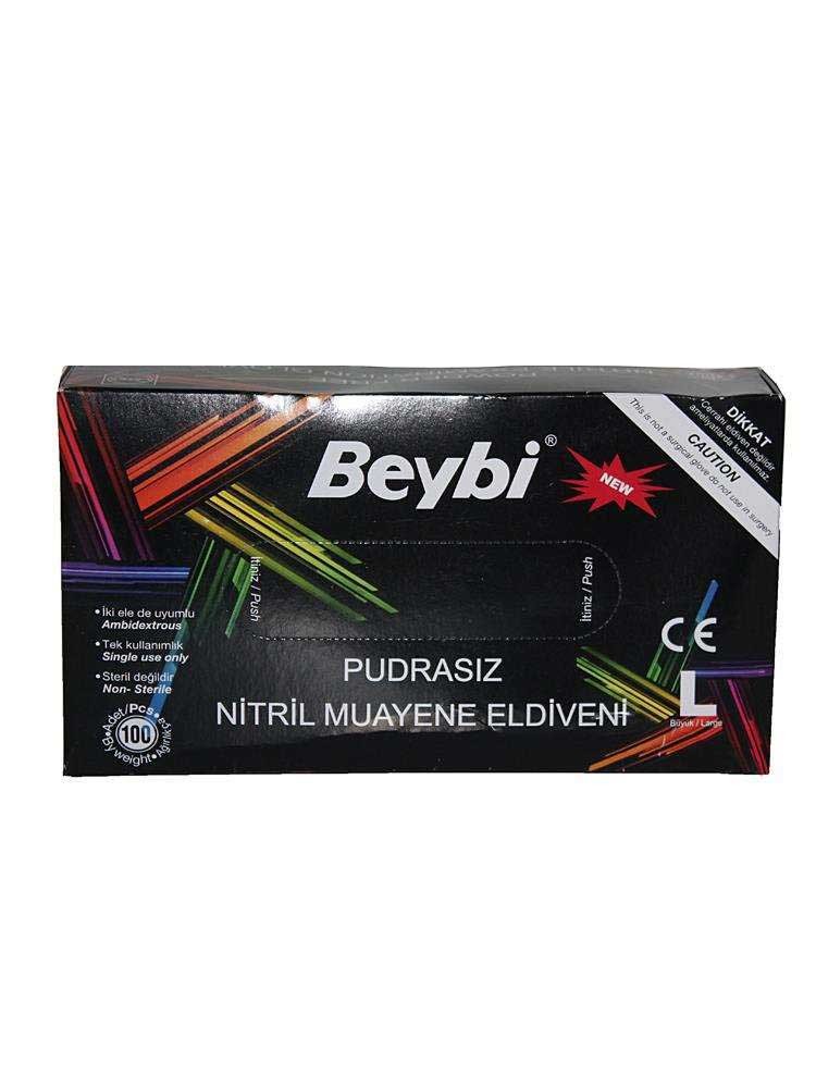 Beybi Nitril Pudrasız Muayene Eldiven Siyah Büyük Boy