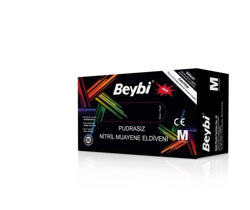 Beybi Nitril Pudrasız Muayene Eldiven Siyah Orta Boy