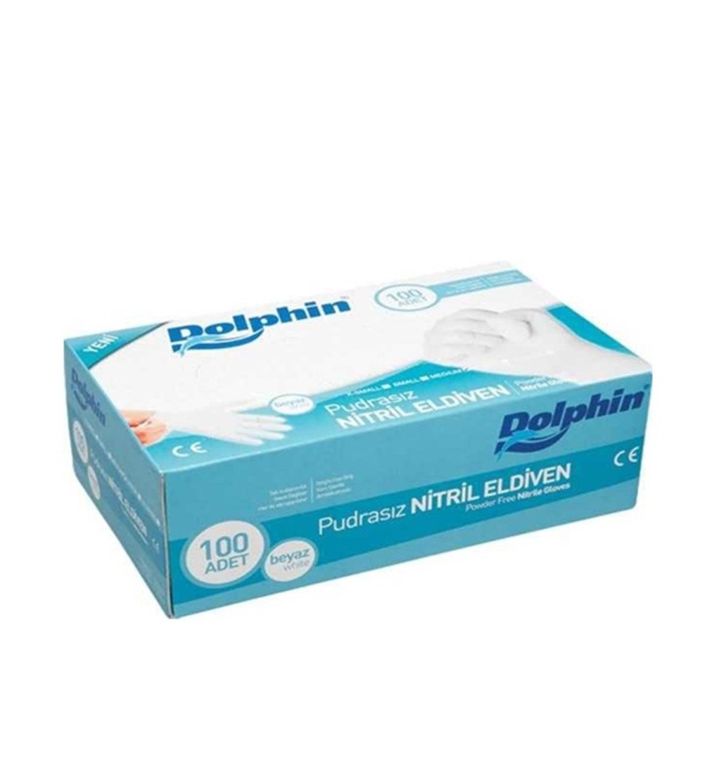 Dolphin Nitril Pudrasız Muayene Eldiven Beyaz Küçük Boy